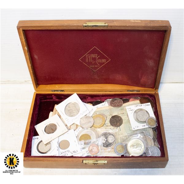 WOOD BOX WITH VARIOUS CANADIAN AND