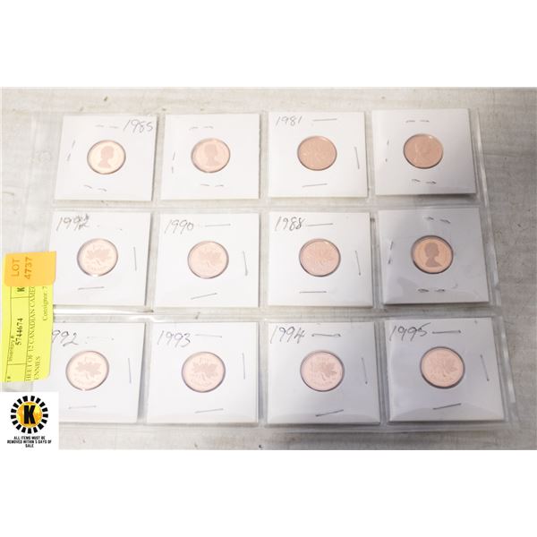 SHEET OF 12 CANADIAN CAMEO PENNIES