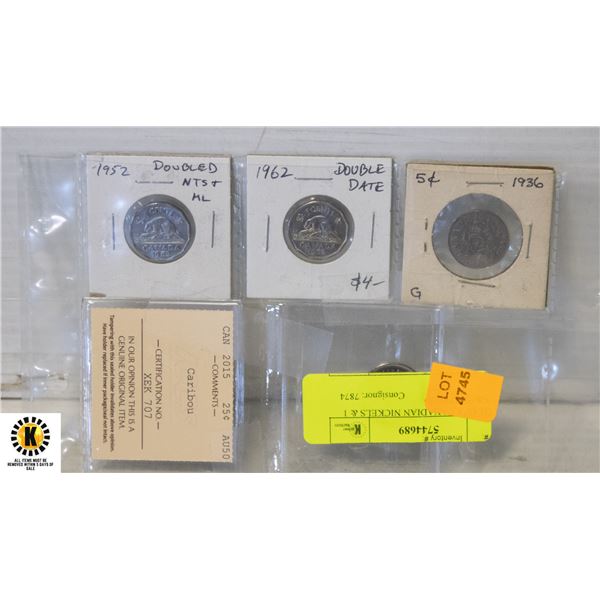 LOT OF 3 CANADIAN NICKELS & 1 ICCS CERTIFIED