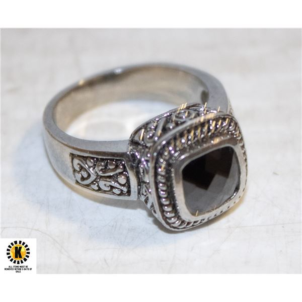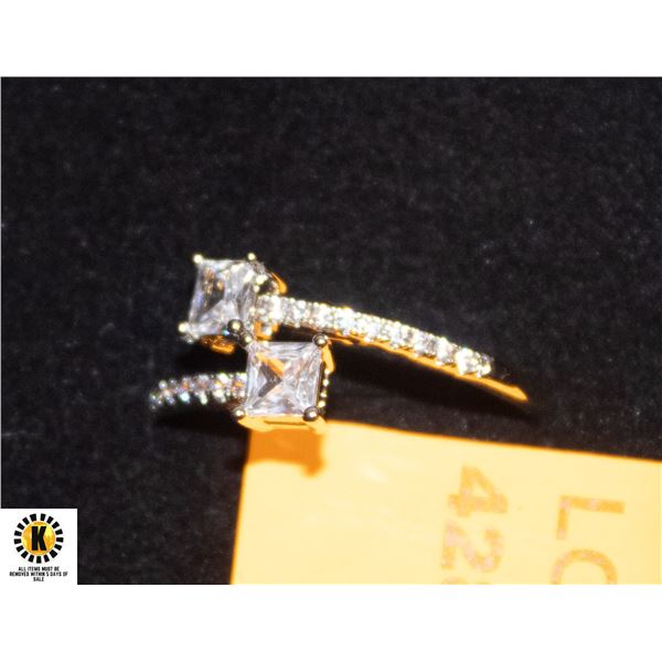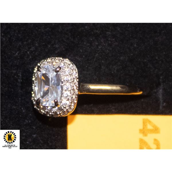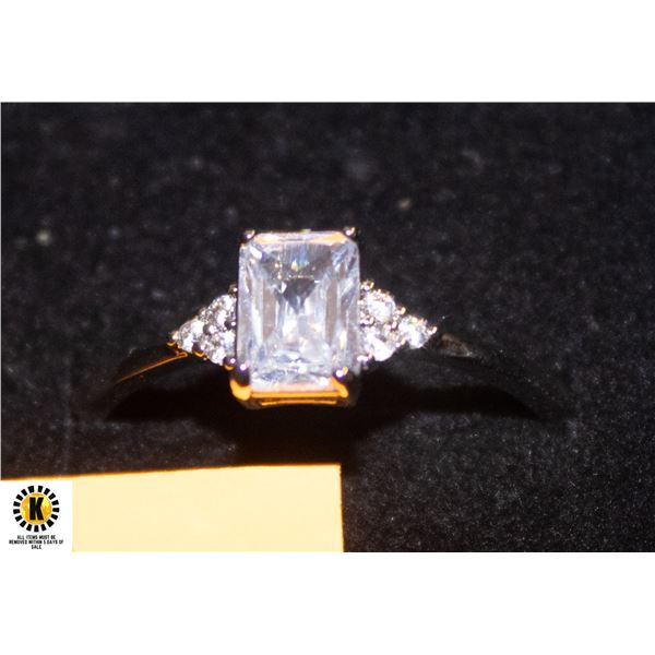 SIZE 7.5 LADIES BLUE AND CLEAR STONE RING