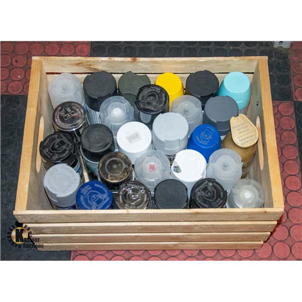 BOX OF SPRAY PAINT (FULL) **SHIPPING NOT AVAILABLE** **ALL ITEMS MUST BE REMOVED BY 5PM SATURDAY, JANUARY 6TH 2023. ALL REMAINING ITEMS WILL BE SU