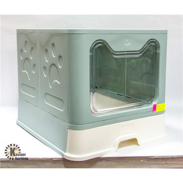 LITTER BOX WITH ABSORBING FILTER AND SLIDING BASE, INCLUDES PINK CAT TOY, LITTER SCOOP AND BRUSH, AMZ SES **ALL ITEMS MUST BE REMOVED BY 5PM SATUR