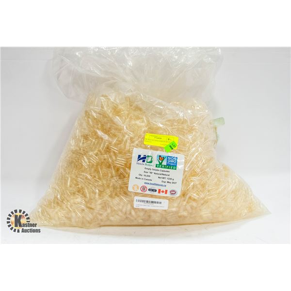 NEW BAG OF 10000 EMPTY GELATIN CAPSULES