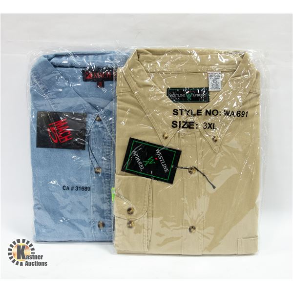 704 - NEW SHIRTS 1DENIM/1TAN SIZE MKastner Auctions