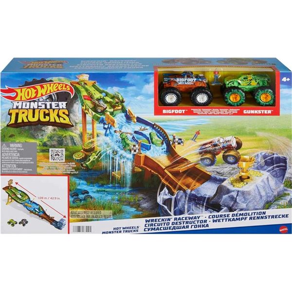 NEW HOTWHEELS MONSTER TRUCKS WRECKIN RACEWAY