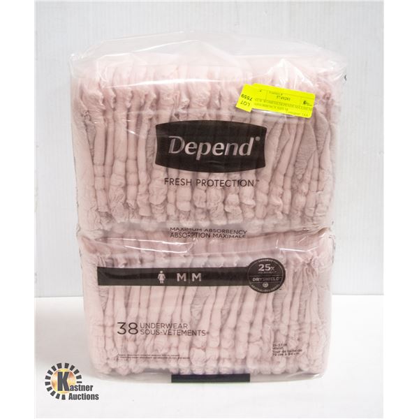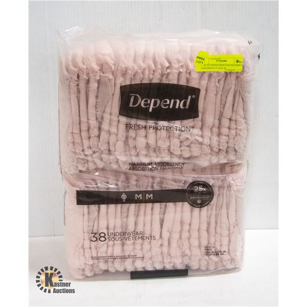 NEW WOMENS DEPENDS MAXIMUM ABSORBENCY SIZE M