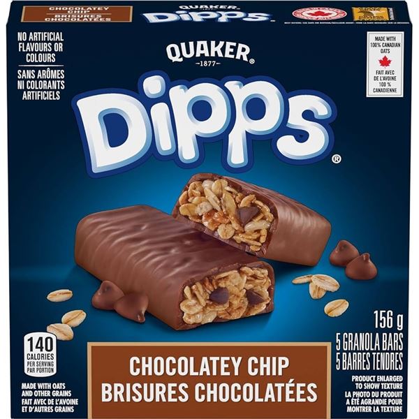 NEW CASE WITH 12 BOXES OF QUAKER DIPPS CHOCOLATEY