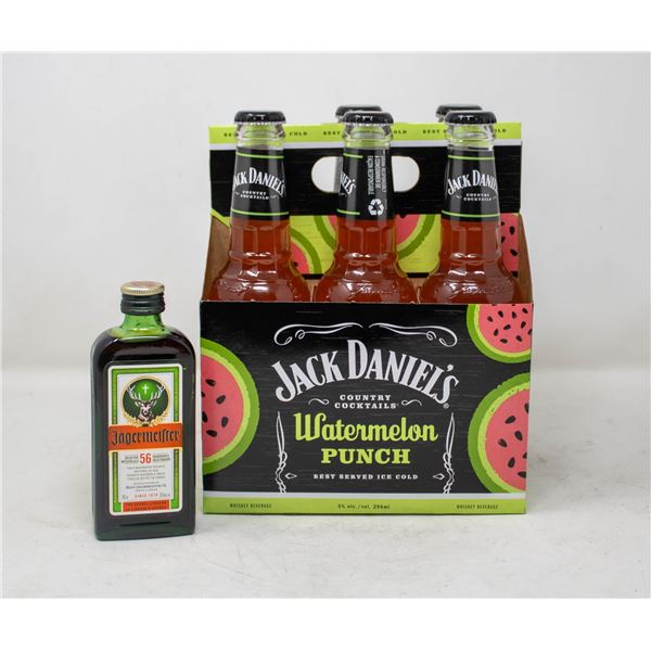 BOTTLE OF JAGERMEISTER, 35% ALCOHOL CONTENT, JACK DANIELS WATERMELON PUNCH IS 296ML 5% ALCOHOL CONTENT *MUST BE 18 AND OVER TO PURCHASE, NO SHIPPING,