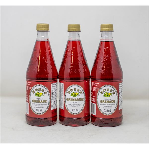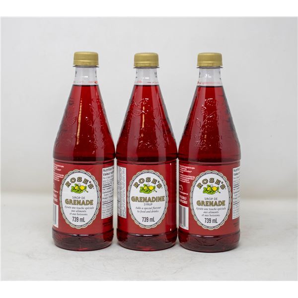 3 BOTTLES OF ROSE'S GRENADINE SYRUP 739ML
