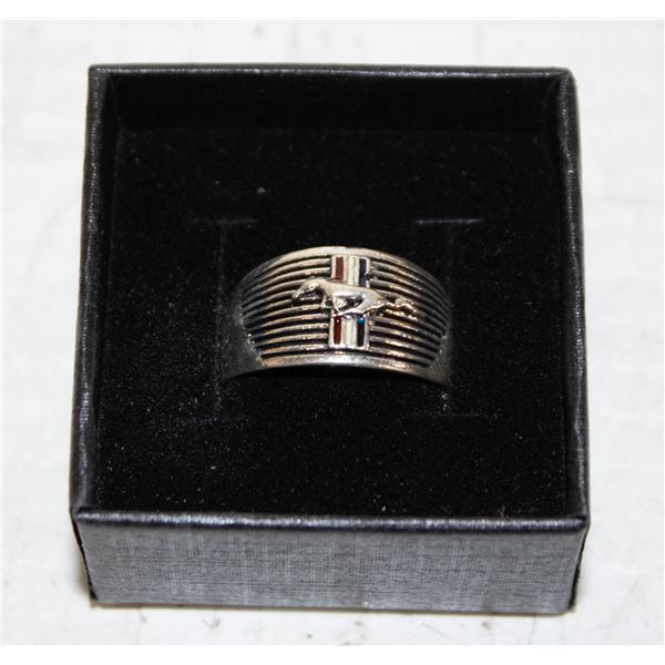 NEW 925 PLATED "FORD MUSTANG" RING SIZE 11