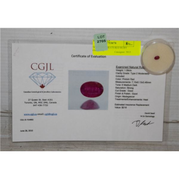 LOOSE 1.09 CARATS RED RUBY GEMSTONE