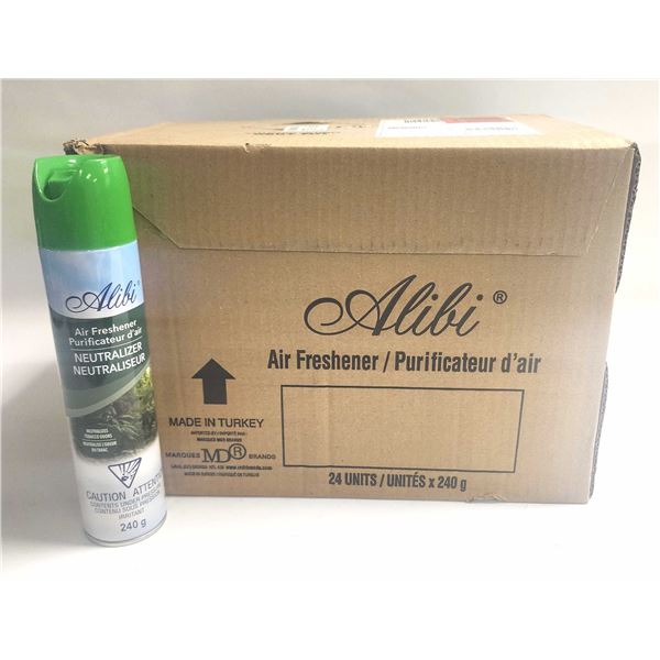 NEW CASE OF 24 BOTTLES WITH ALIBI AIR FRESHENER