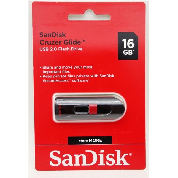 NEW SANDISK CRUZER GLIDE 16GB FLASH DRIVE