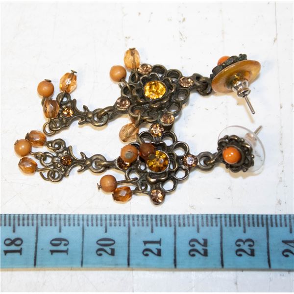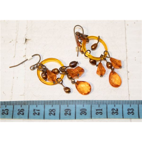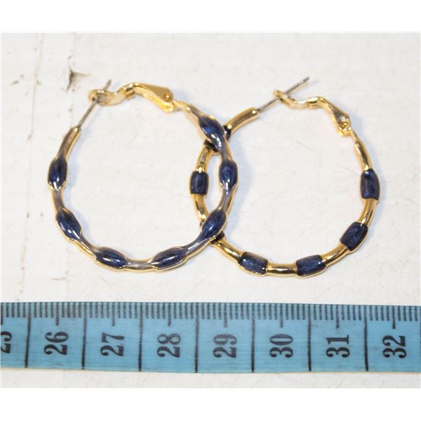 PAIR GOLD TONE ENAMEL HOOP EARRINGS