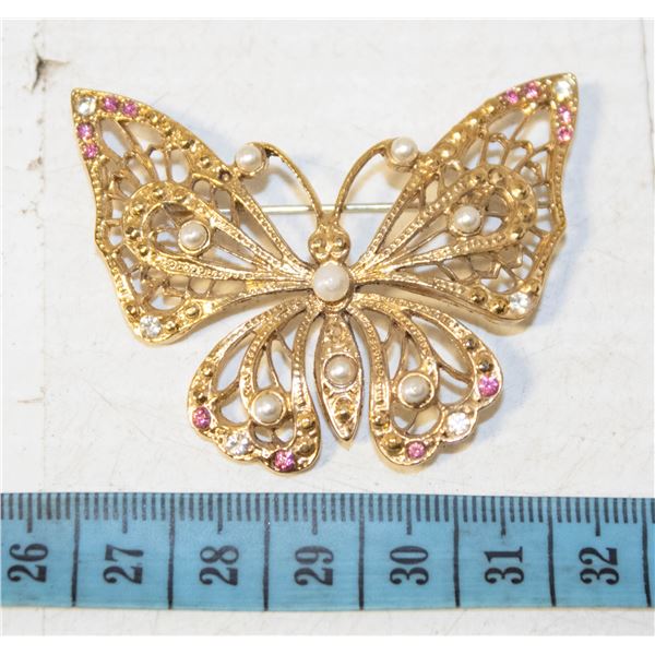 GOLD TONE BUTTERFLY FILIGREE BROOCH