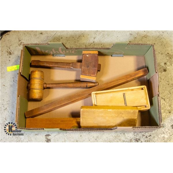 ANTIQUE WOOD TOOLS- LEVELS/PLANER/MALLETS