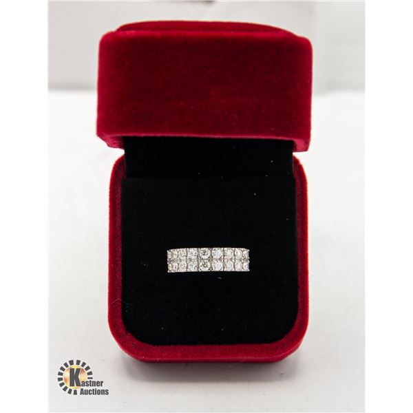 THAT IS CHANNEL SET WITH 10 CUBIC ZIRCONIUM SET PER SIDE SET IN STERLING SILVER RING SIZE 8 **ALL ITEMS MUST BE REMOVED BY 5PM SATURDAY, MARCH 2ND