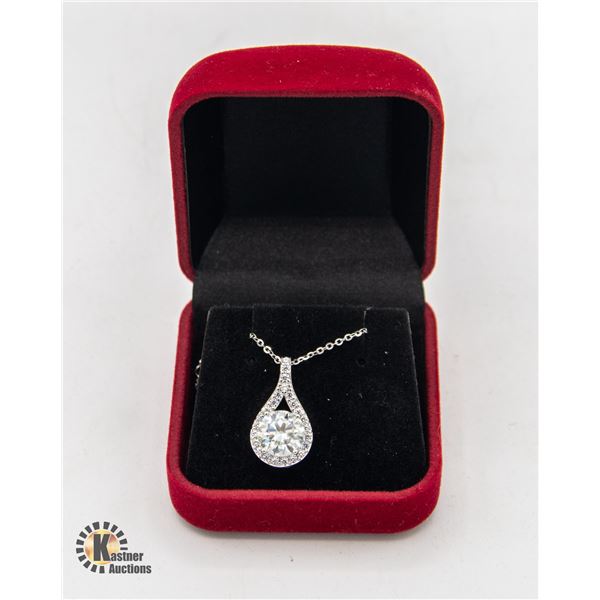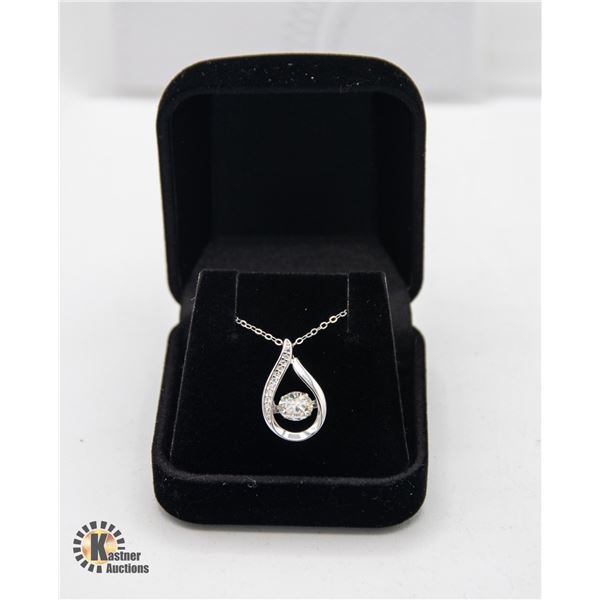 CENTER OF TEAR DROP PENDANT WITH 10 ROUND CUBIC ZIRCONIUM WEIGHING APPROX. TOTAL 0.10 SET IN STERLING SILVER PENDANT AND NECKLACE **ALL ITEMS MUST