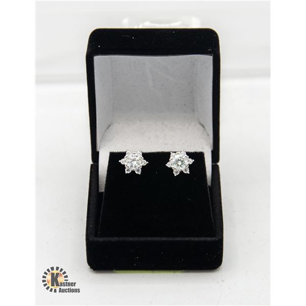 APPROXIMATELY 1.00 CARAT EACH SET IN 925 STERLING SILVER WITH A HALO WITH 40 STONES AND SCREW BACK **ALL ITEMS MUST BE REMOVED BY 5PM SATURDAY, MA