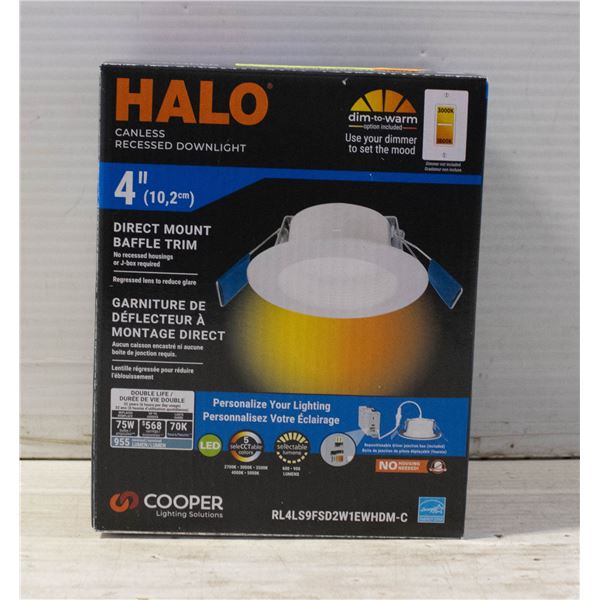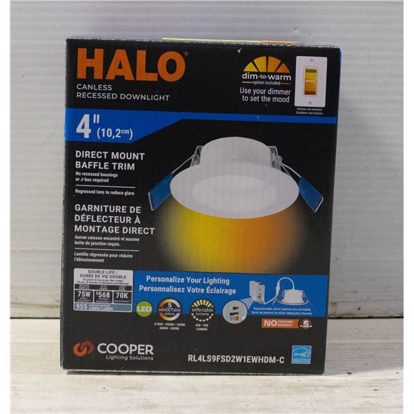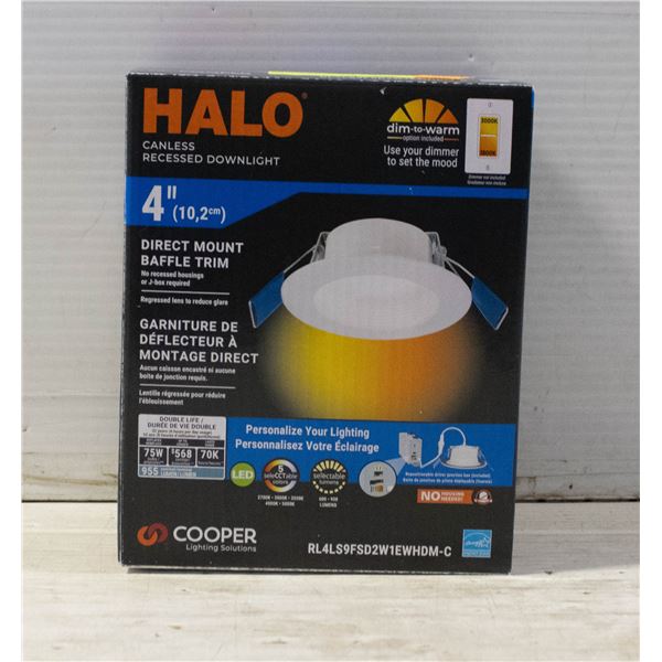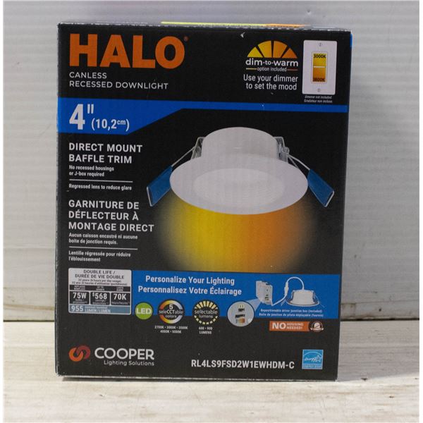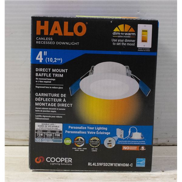 NEW COOPER HALO 4" CANLESS RECESSED DOWNLIGHT