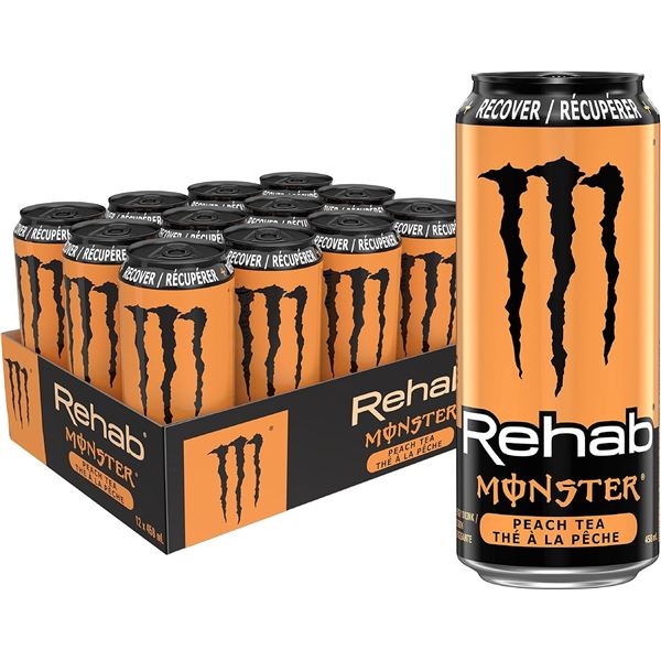 NEW CASE OF 12 REHAB MONSTER ENERGY DRINK - PEACH