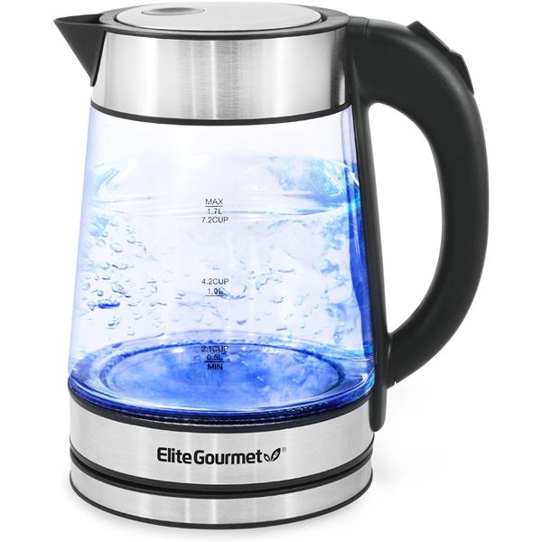 NEW ELITE GOURMET 1.7L GLASS CORDLESS ELECTRIC