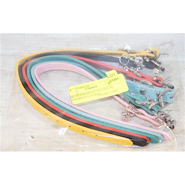 LOT OF 6 PACK CAT PET COLLAR WITH BELLS LEATHER