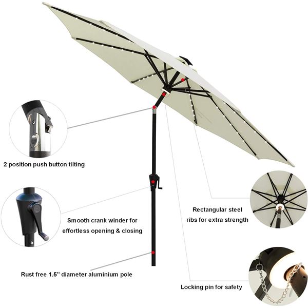 STYLE LED LIGHTED UMBRELLA IN IVORY COLOUR - AMZ SES **ALL ITEMS MUST BE REMOVED BY 5PM SATURDAY, MARCH 16TH 2024. ALL REMAINING ITEMS WILL BE SUB