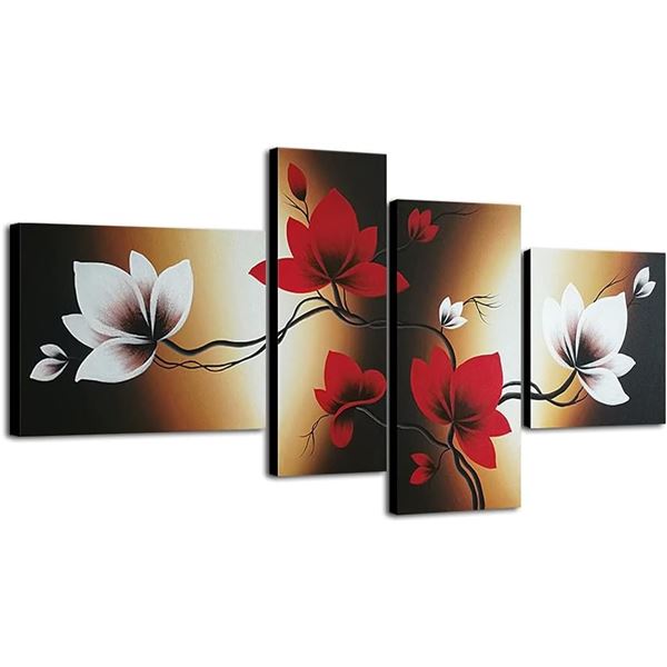 4 CANVAS PANELS, FLORAL OIL PAINTINGS. AMZ SES **ALL ITEMS MUST BE REMOVED BY 5PM SATURDAY, MARCH 16TH 2024. ALL REMAINING ITEMS WILL BE SUBJECT T