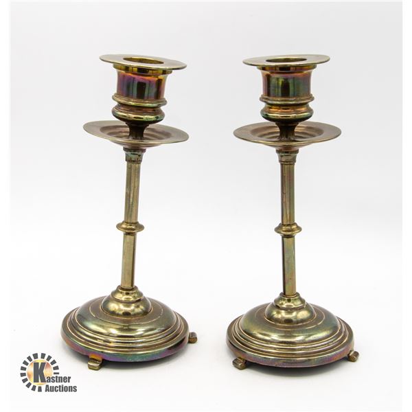 PAIR OF OLD BRASS METAL CANDLE STICK HOLDERS