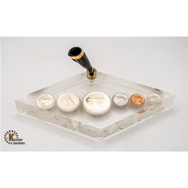 1867-1967 SILVER CANADA COIN SET IN DESK PEN