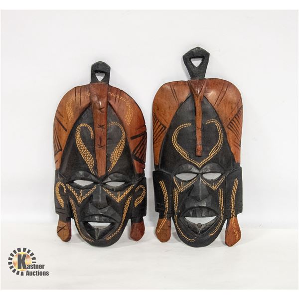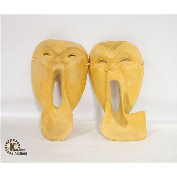 PAIR VINTAGE HAND CARVED WOODEN MASKS
