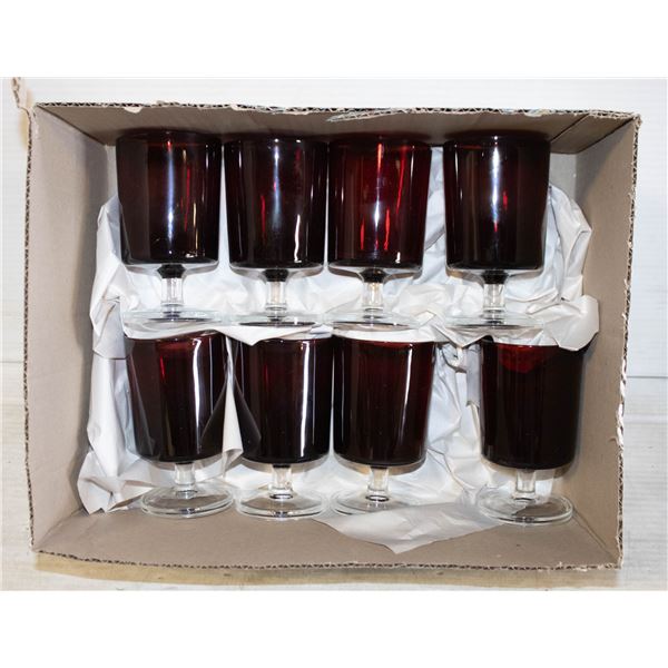 VINTAGE LUMINARC RUBY RED CORDIAL GLASSES 8 PCS