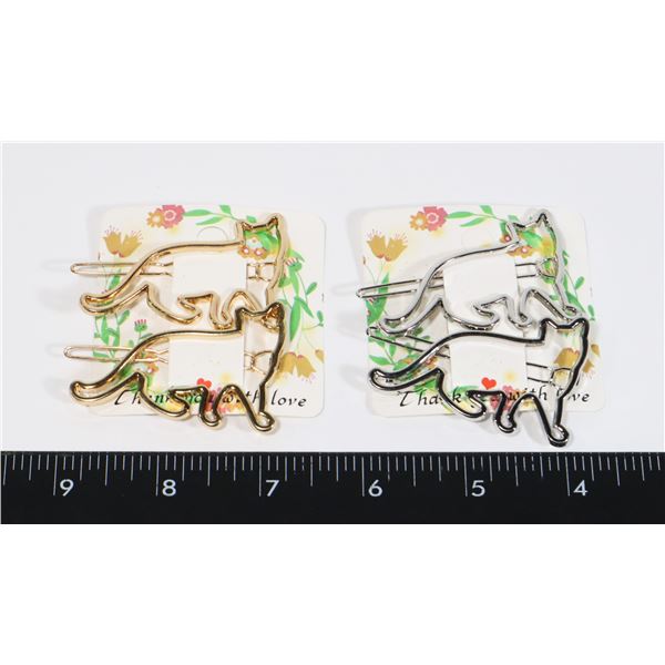 NEW CAT DESIGN HAIR BARRETTES. ONE GOLD TONE SET