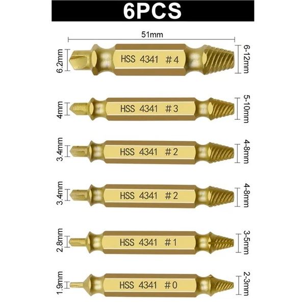NEW 6 PCs.DUAL SIDED BROKEN BOLD & SCREW EXTRACTOR