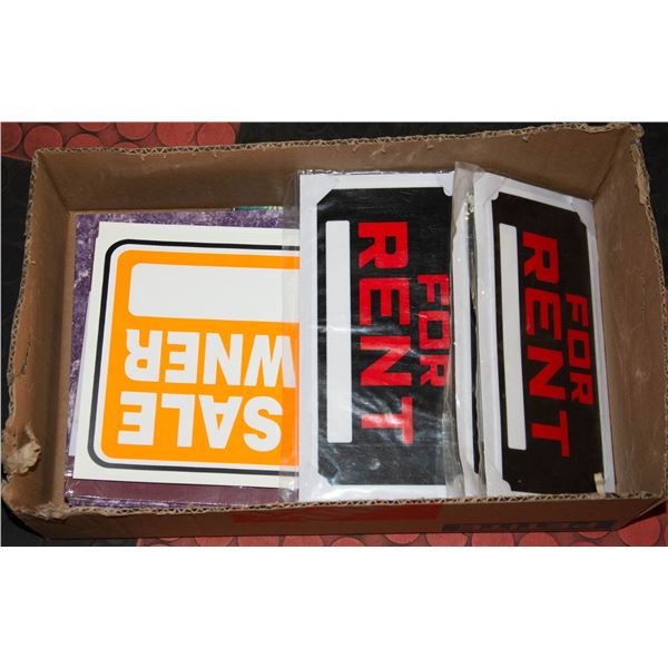 BOX OF NEW "FOR RENT" SIGNS & "FOR SALE BUY OWNER"1617 - BOX OF NEW "FOR RENT" SIGNS & "FOR SALE BUY OWNER"