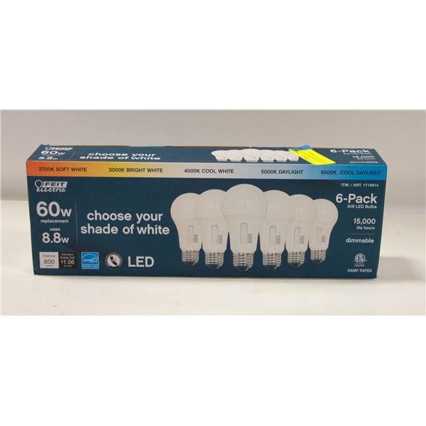 6-PACK FEIT ELECTRIC A19 LED DIMMABLE LIGHT BULBS1624 - 6-PACK FEIT ELECTRIC A19 LED DIMMABLE LIGHT BULBS