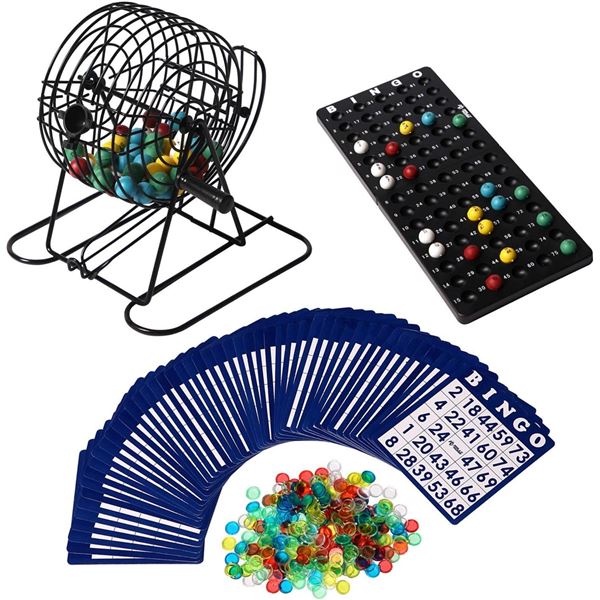 INCLUDES METAL CAGE, CALLING BOARD, 75 BALLS, 300 CHIPS, 50 CARDS. UNBOXED PRODUCT DOES NOT COME WITH PACKAGING. AMZ SES