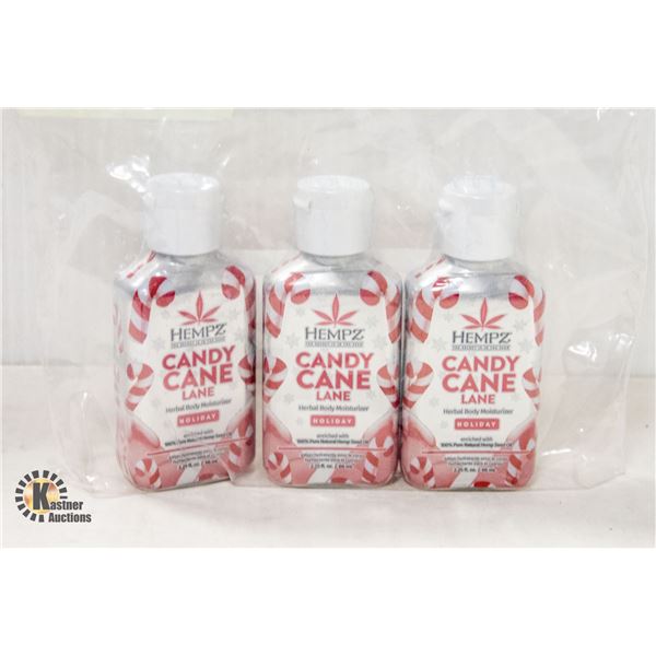 NEW LOT OF 3 HEMPZ CANDY CANE LANE HOLIDAY BODY