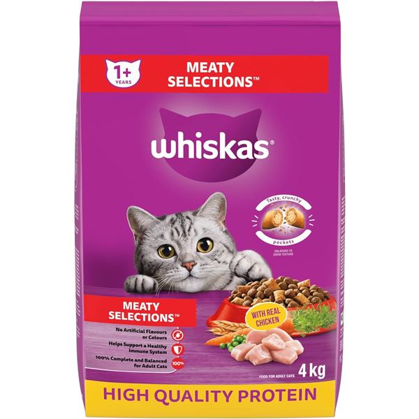 NEW WHISKAS MEATY SELECTIONS 4KG DRY CAT FOOD