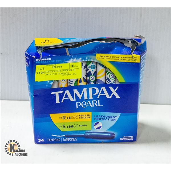 NEW TAMPAX PEARL PACK OF 34 REGULAR/SUPER TAMPONS