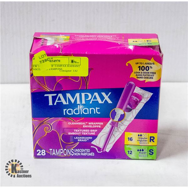 NEW 28 PACK OF TAMPAX RADIANT UNSCENTED TAMPONS