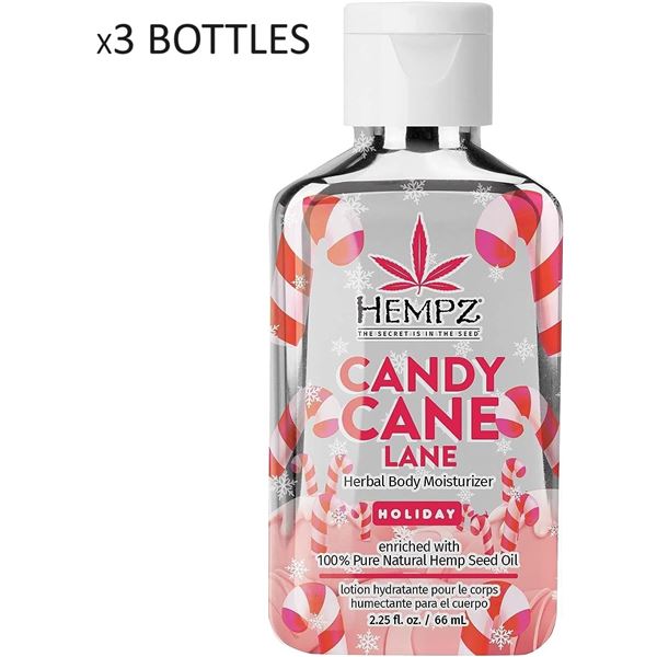NEW 3 X 66ML BOTTLES OF HEMPZ CANDY CANE LANE