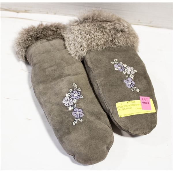 ESTATE FUR TRIMMED SUED LEATHER MITTS