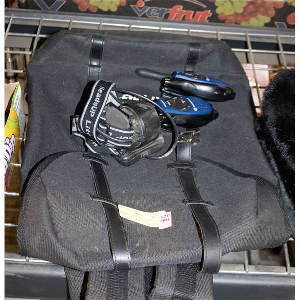 MOTOROLA WALKIE TALKIE SET, HEADLAMP & BACKPACK