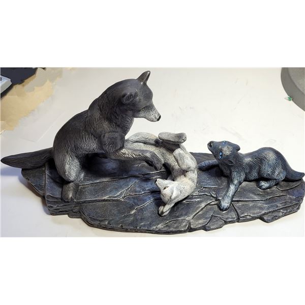 20) CERAMIC WOLF MOTHER SND HER 2 PUPS, 13" X 6"