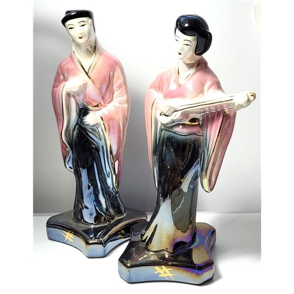 19) LOT OF 2 JAPANESE LUSTRE WEAR 9.5" TALL FIGU