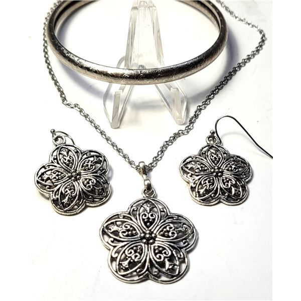 AND MATCHING PENDANT ON 18" CHAIN AND BANGLE BRACELET