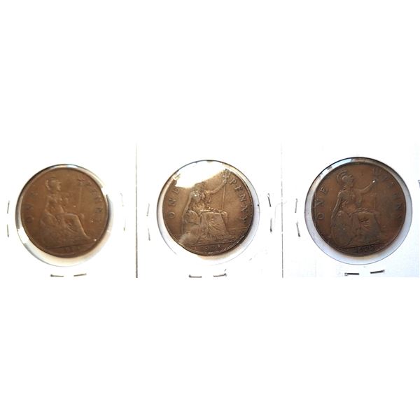 8) LOT OF 3 KING GEORGE V LARGE BRITISH PENNIES,