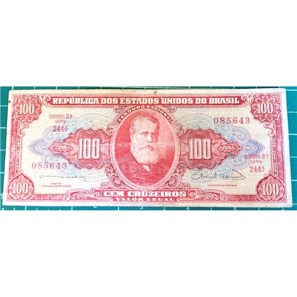 1) BRAZILLIAN 100 CRUZEIROS BANK NOTE FROM 1960.